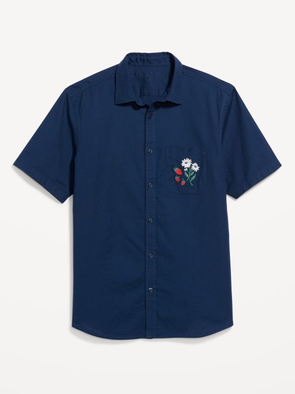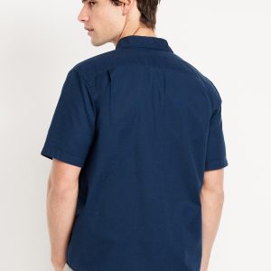 Classic Fit Everyday Linen-Blend Shirt: spread collar, short sleeves, full-button front, patch chest pocket, prints vary, #807396