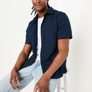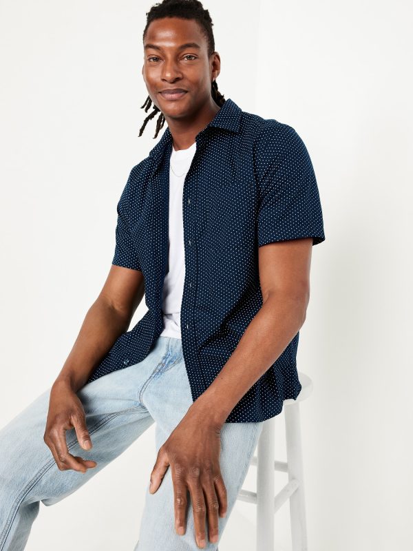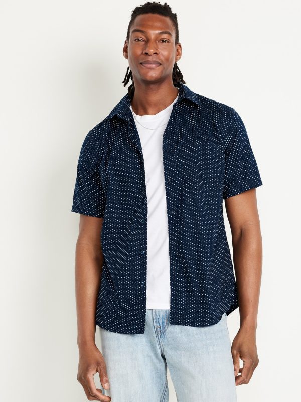 Classic Fit Everyday Pocket Shirt: spread collar, short sleeves, full-button front, patch chest pocket, prints vary, #807396