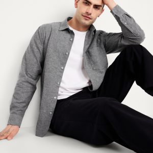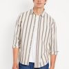 Classic Fit Linen-Blend Shirt: spread collar, long sleeves, buttoned cuffs, full-button front, patch chest pocket, #691163
