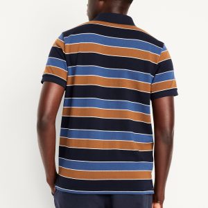 Classic Fit Striped Pique Polo: spread rib-knit collar, short sleeves with rib-knit cuffs, buttoned placket, striped print, vented sides, #800818