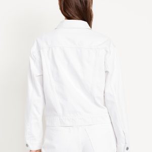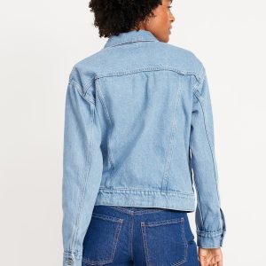 Classic Jean Jacket: spread collar, long sleeves, buttoned cuffs, flap-button chest pockets, on-seam front pockets, full-button front, banded hem, adjustable button tabs at back waist, #467752