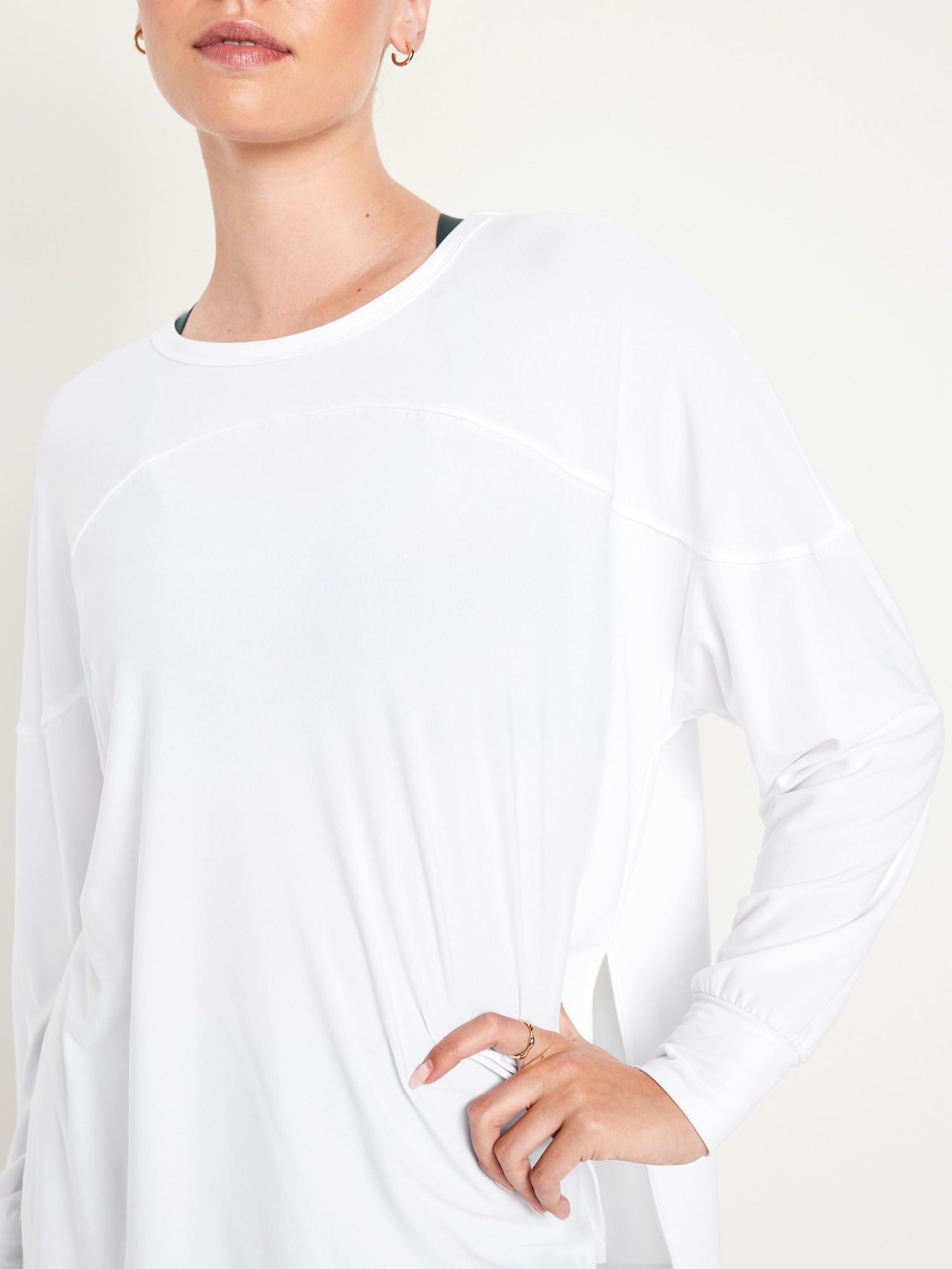 CloudMotion Tunic: The new Cloud94 Soft. Versatile, sweat-wicking and soft as a literal cloud.crew neck, long sleeves, seamed yoke, vented sides, #809348
