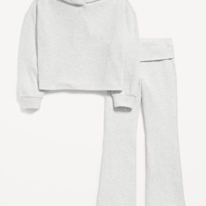 CozePlush Pullover Hoodie and Flare-Leg Pants Set for Girls: built-in hood, long sleeves, drop shoulders, elasticized waistband, flared leg, online exclusive, #787755
