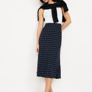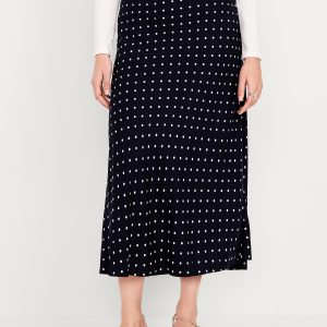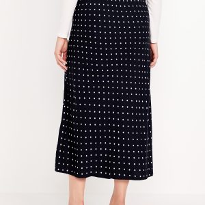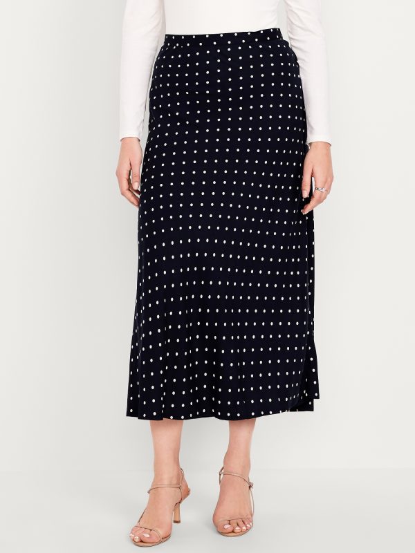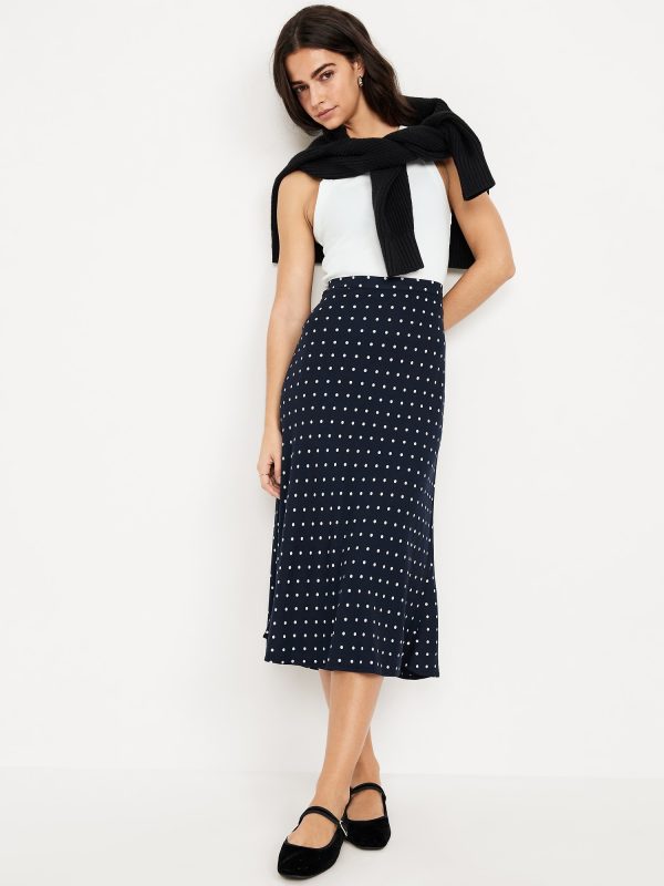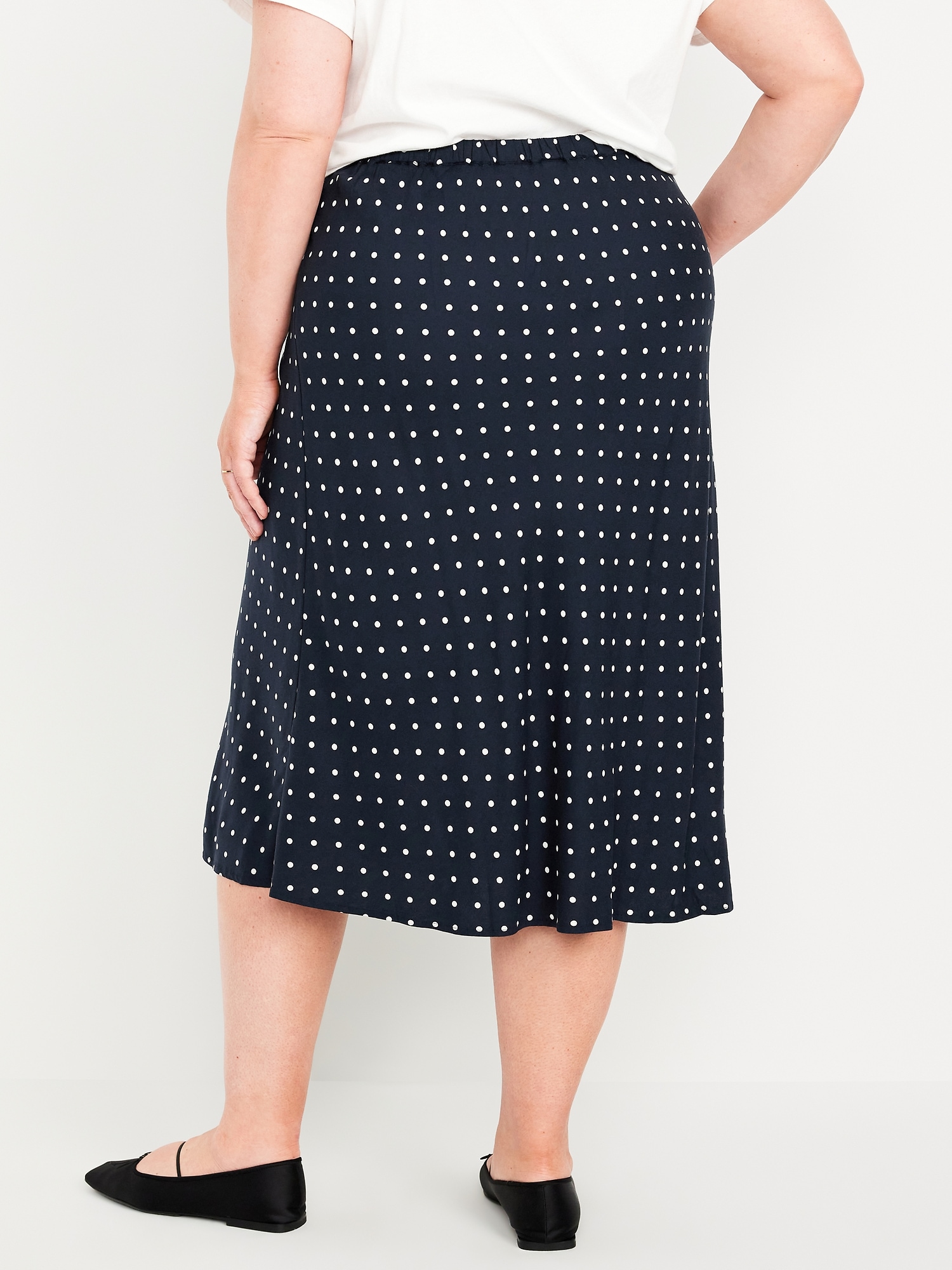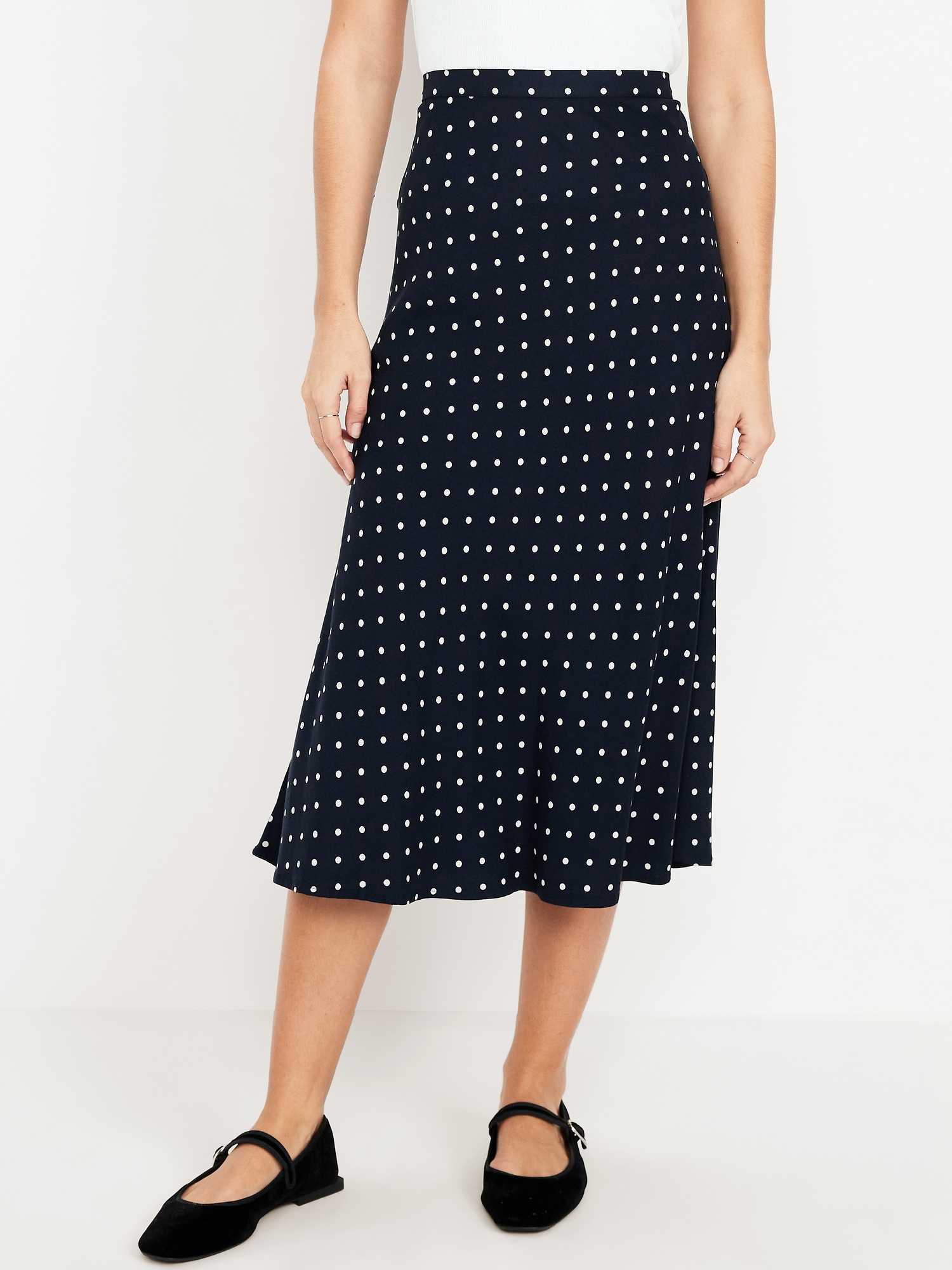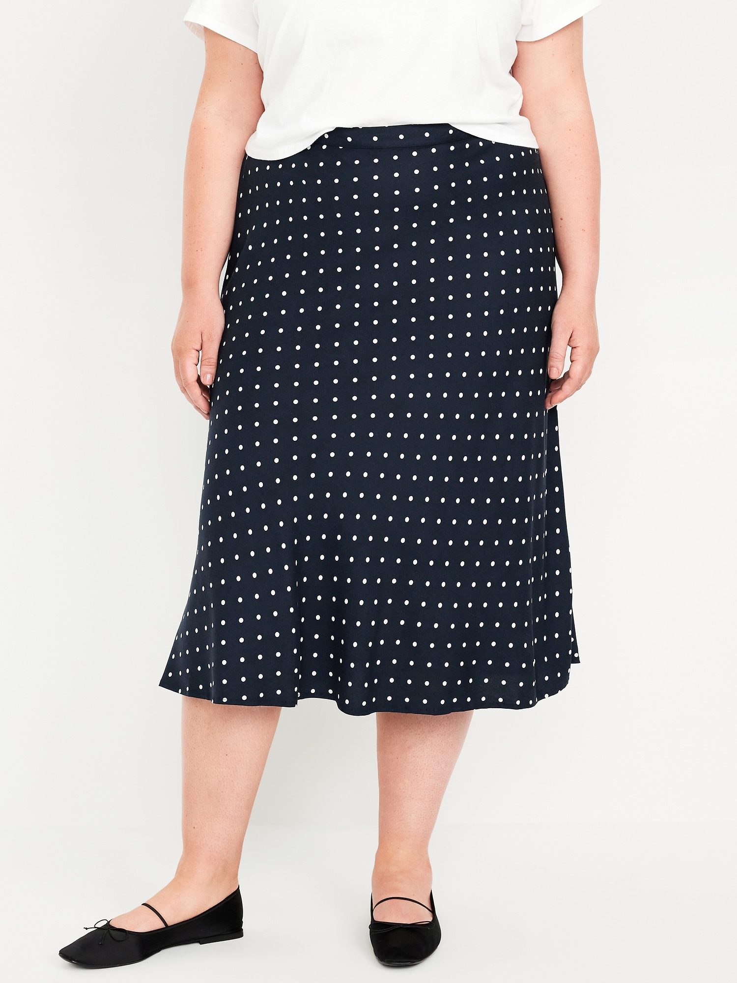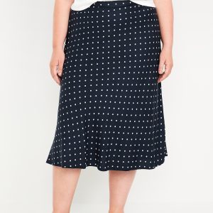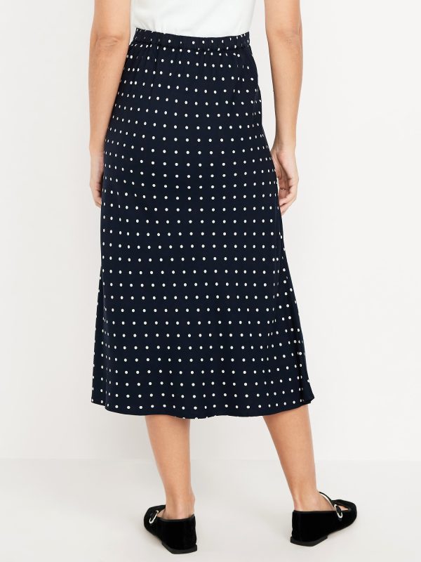 Crepe A-Line Midi Skirt: elastic back waist, pull-on style, prints vary, #681199