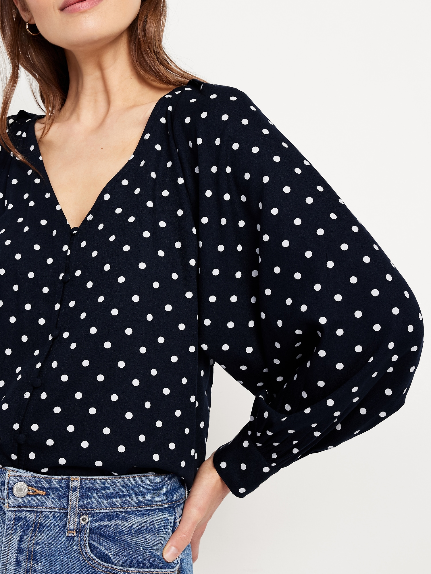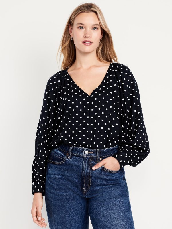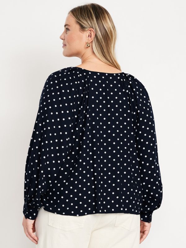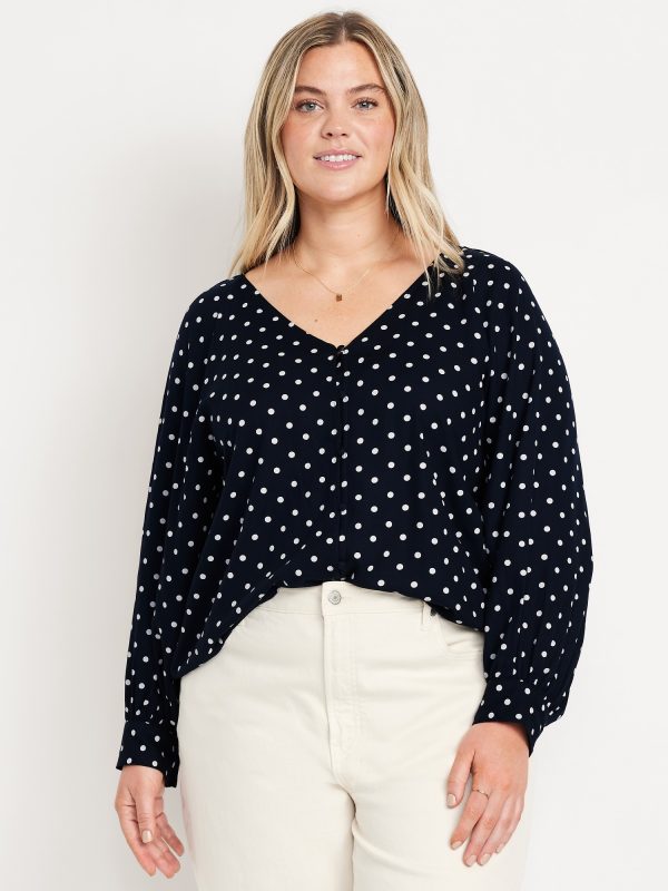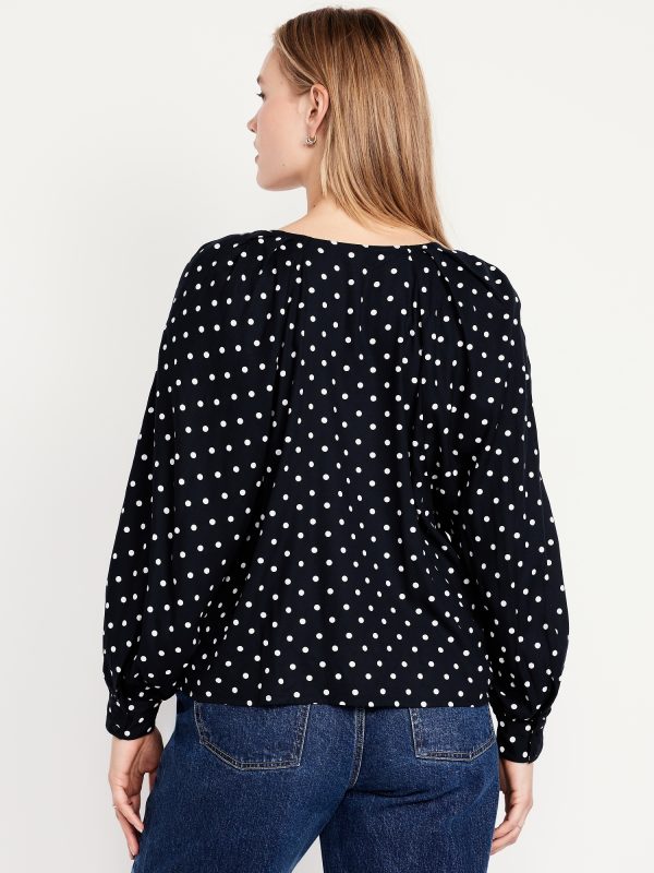 Crepe Button-Down Top: v-neck, raglan sleeves with buttoned cuffs, full-button front, prints vary, #805742