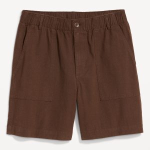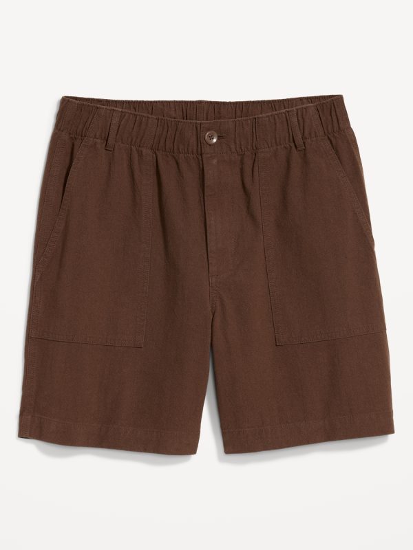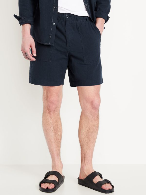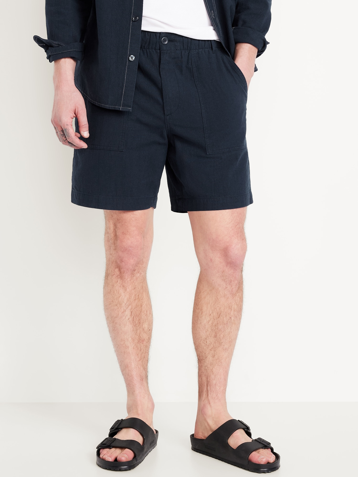 Crepe Workwear Shorts — 7-inch inseam: elastic-drawstring waistband, button front, front utility pockets, back button-flap pockets, easy pull-on style, #751383