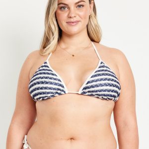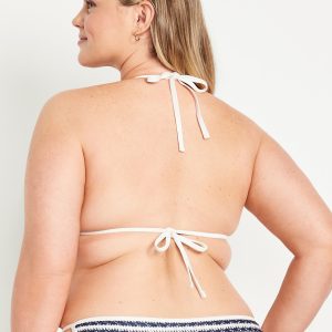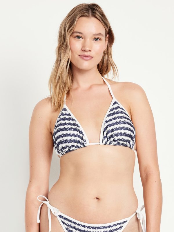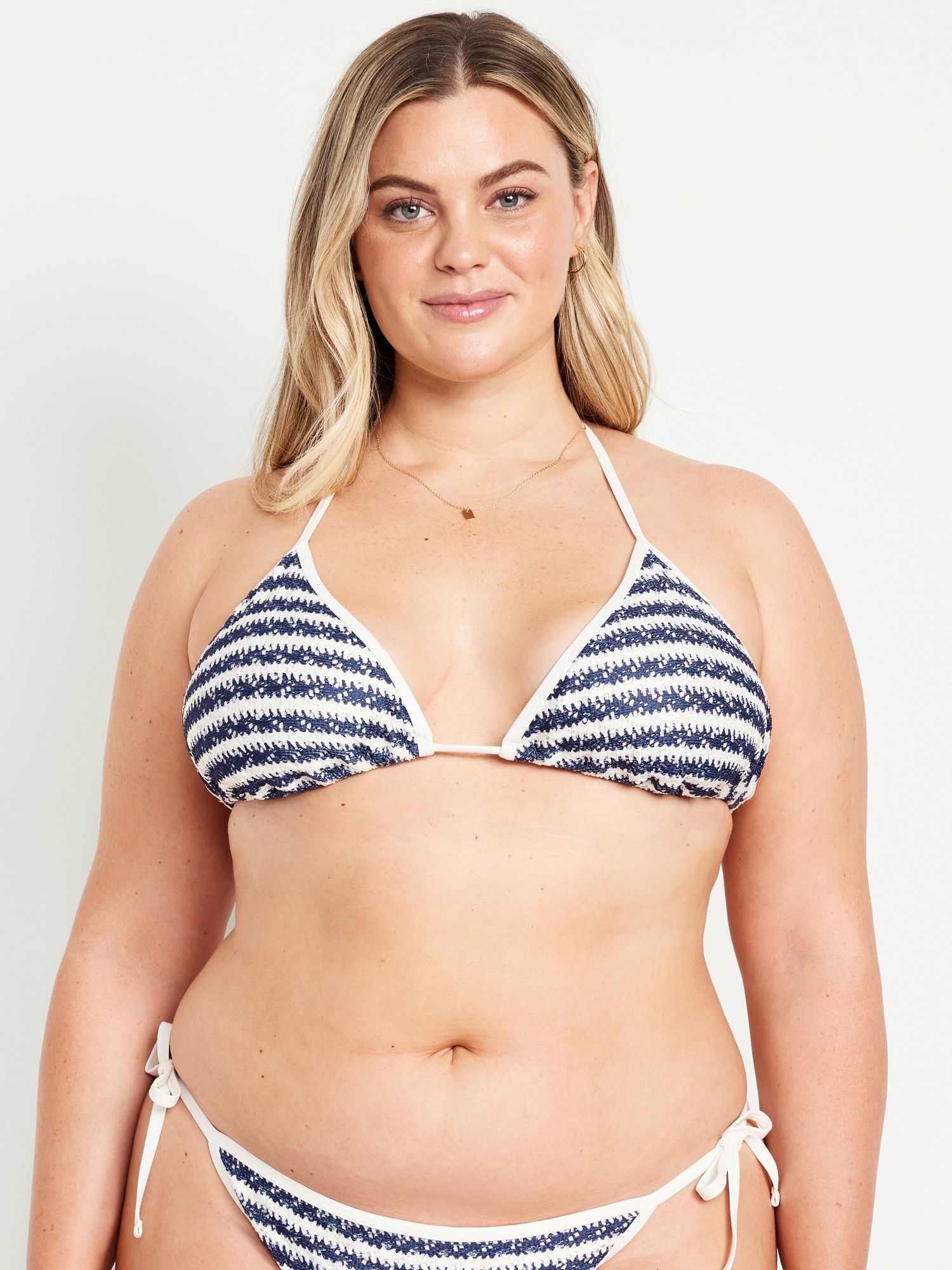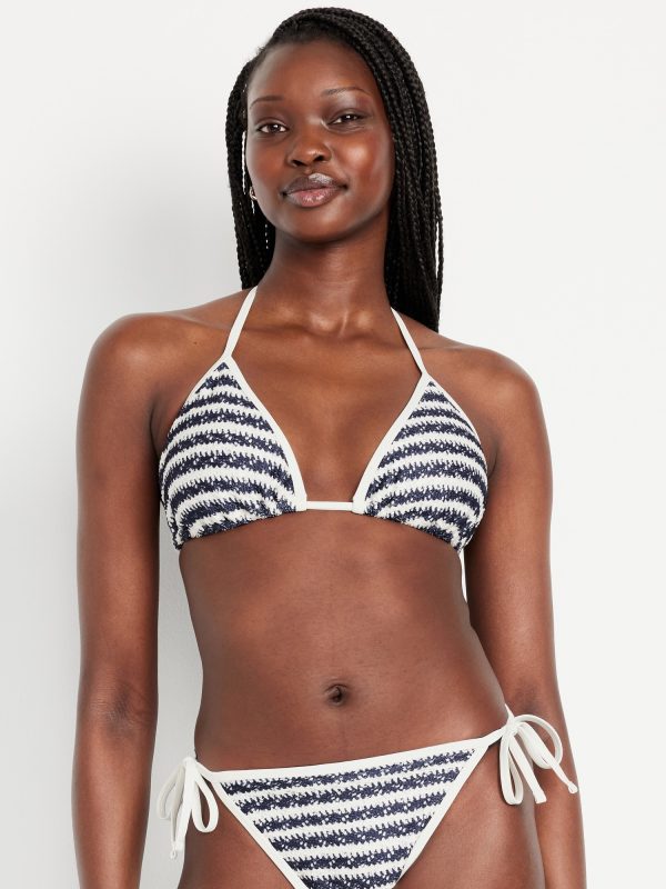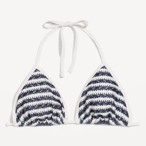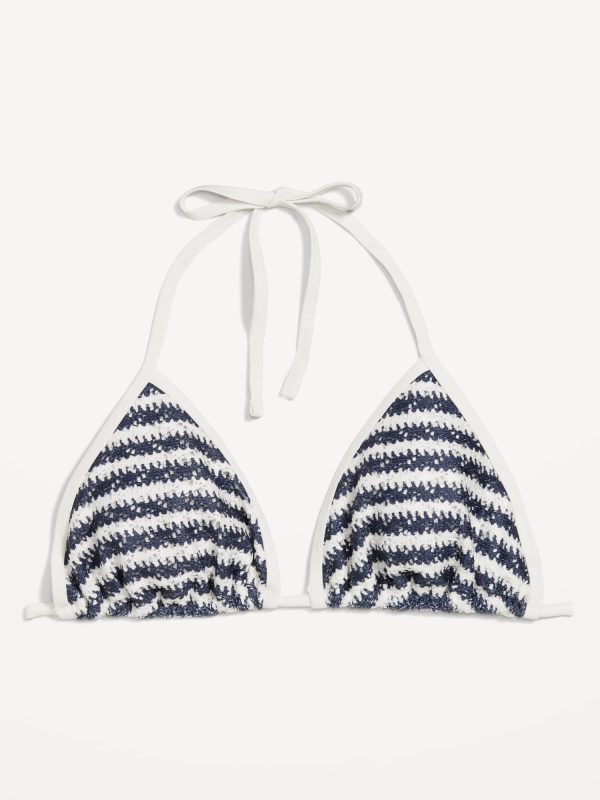 Crochet Triangle Bikini Swim Top: tie-neck halter straps, removable pads, tie-back strap, #747897