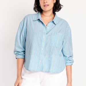 Cropped Button-Down Striped Shirt