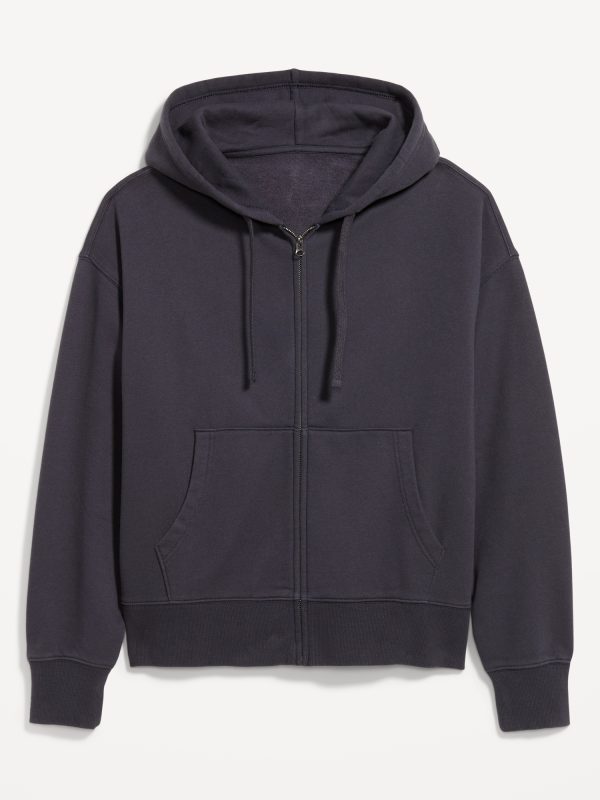 Cropped Rotation Oversized Zip Hoodie: drawstring hood, long drop-shoulder sleeves, full-zip front, hand-warming pockets, rib-knit trim, #828315