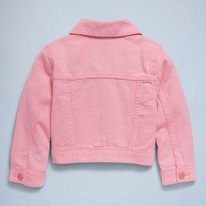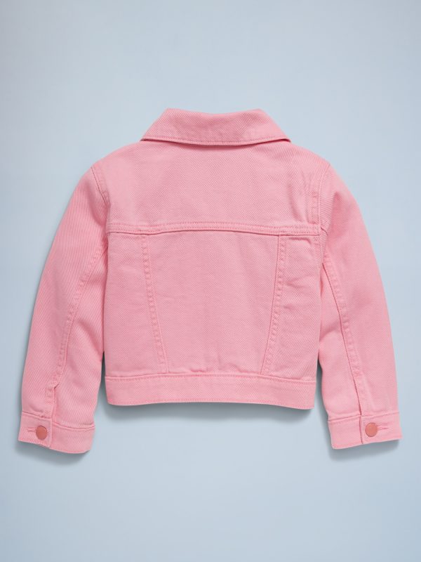 Cropped Trucker Twill Jacket for Toddler Girls: pointed collar, long sleeves, multi-color snap-button placket, faux snap-flap pockets at chest, on-seam welt pockets, #693444