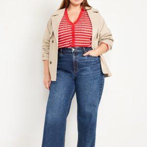 Curvy Extra High-Waisted Wide-Leg Jeans: A roomy wide leg with a smaller waist, fuller hips.no-gap extra high waist, zip fly, front scoop pockets, back patch pockets, ripped detail, #855940