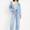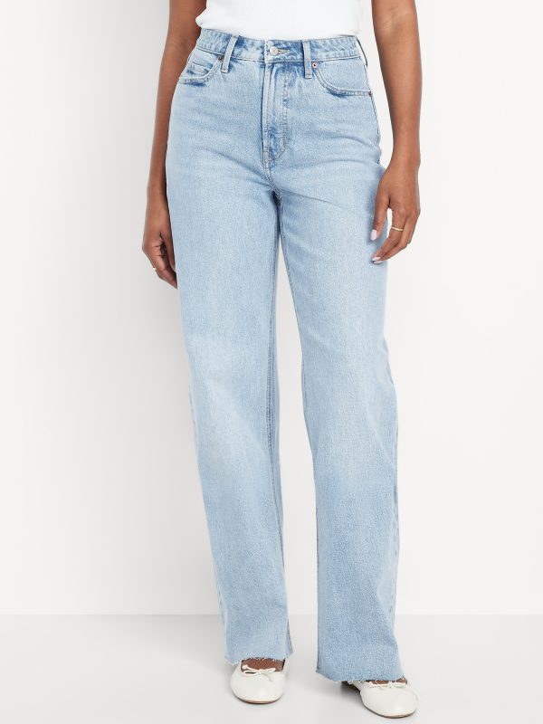 Curvy Extra High-Waisted Wide-Leg Jeans: A roomy wide leg with a smaller waist, fuller hips.no-gap extra high waist, zip fly, front scoop pockets, back patch pockets, ripped detail, #855940