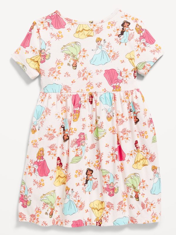 Disney© Fit and Flare Pocket Dress for Toddler Girls: scoop neck, short sleeves, seamed waist, full skirt, patch pockets at skirt, all-over licensed graphic, ©Disney., online exclusive, #803674