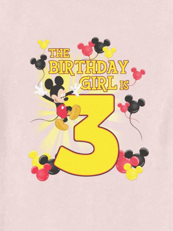Disney Mickey Birthday Girl Is 3 Graphic T-Shirt for Toddler: