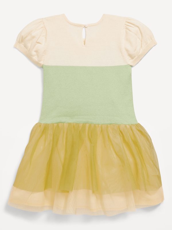 Disney© Short-Sleeve Tiana Tutu Dress: crew neck, cap sleeves, button-loop closure at nape, seamed waist with encased elastic, overlay at skirt, ©Disney, #766781