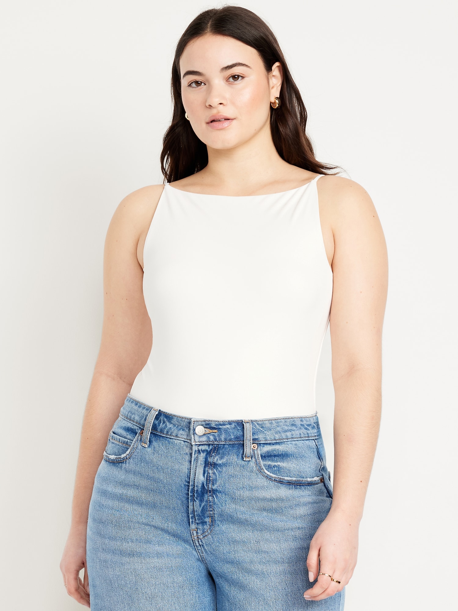 Double-Layer Cami Bodysuit: high cami neck, sleeveless, snaps at inseam, #686657