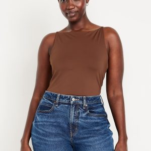 Double-Layer Cami Bodysuit: high cami neck, sleeveless, snaps at inseam, #686657