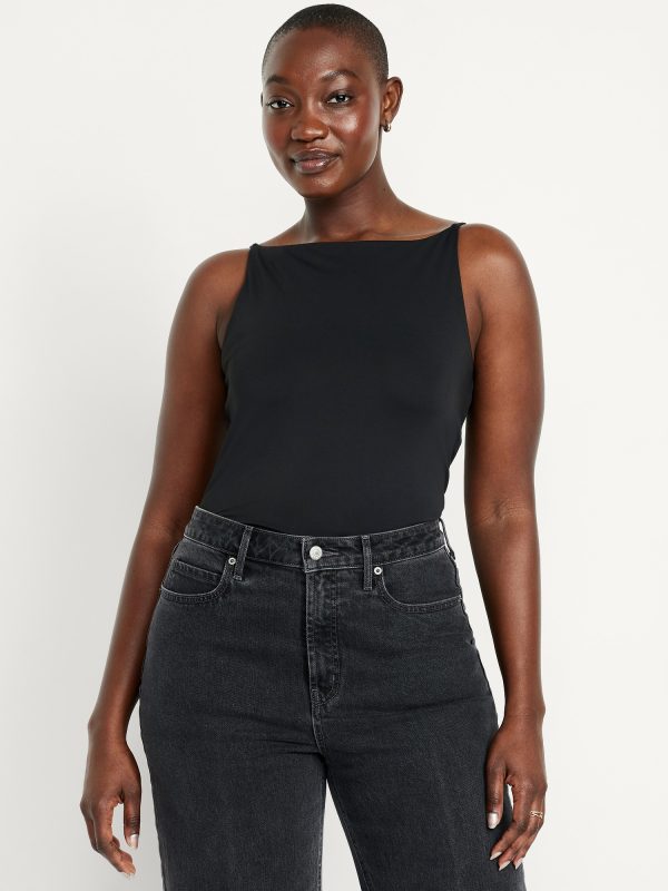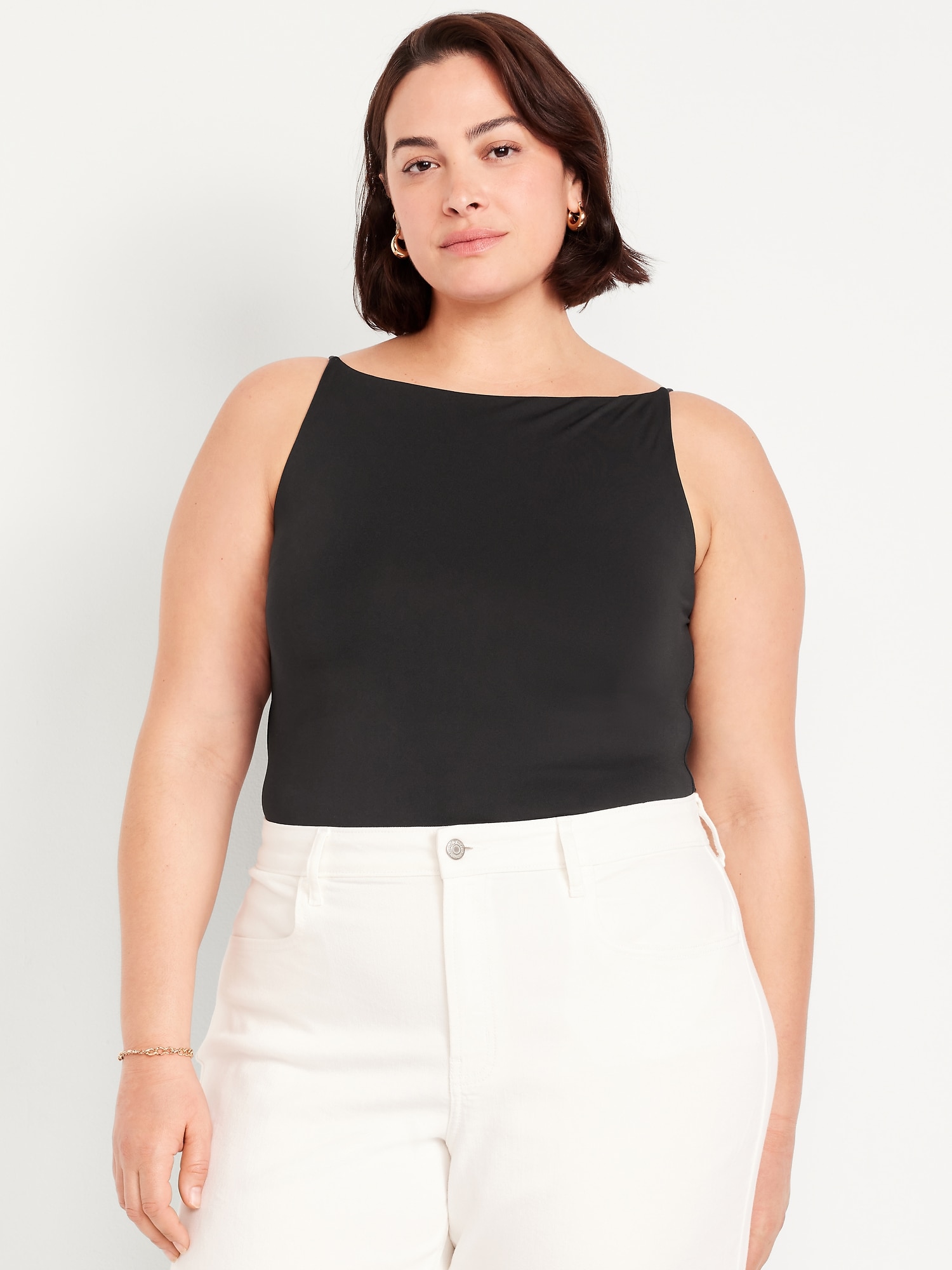Double-Layer Cami Bodysuit: high cami neck, sleeveless, snaps at inseam, #686657