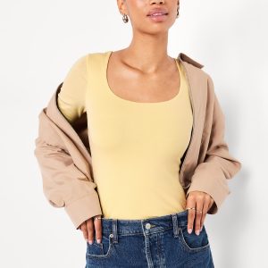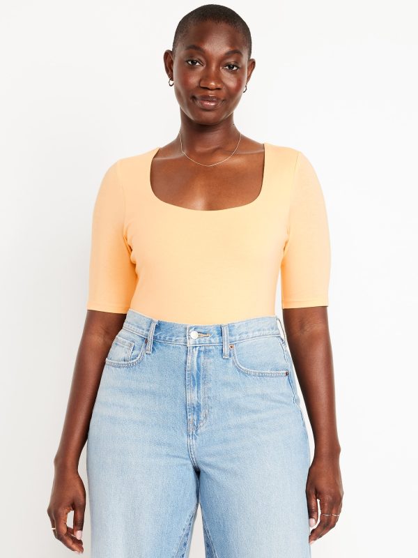 Double-Layer Elbow-Sleeve Scoop-Neck T-Shirt
