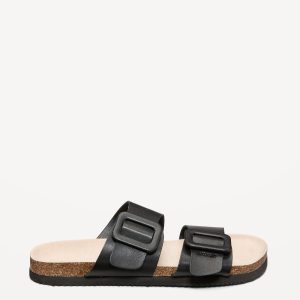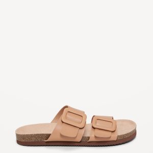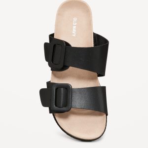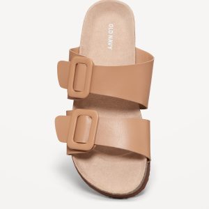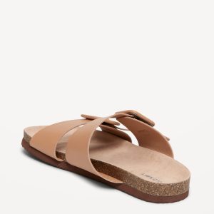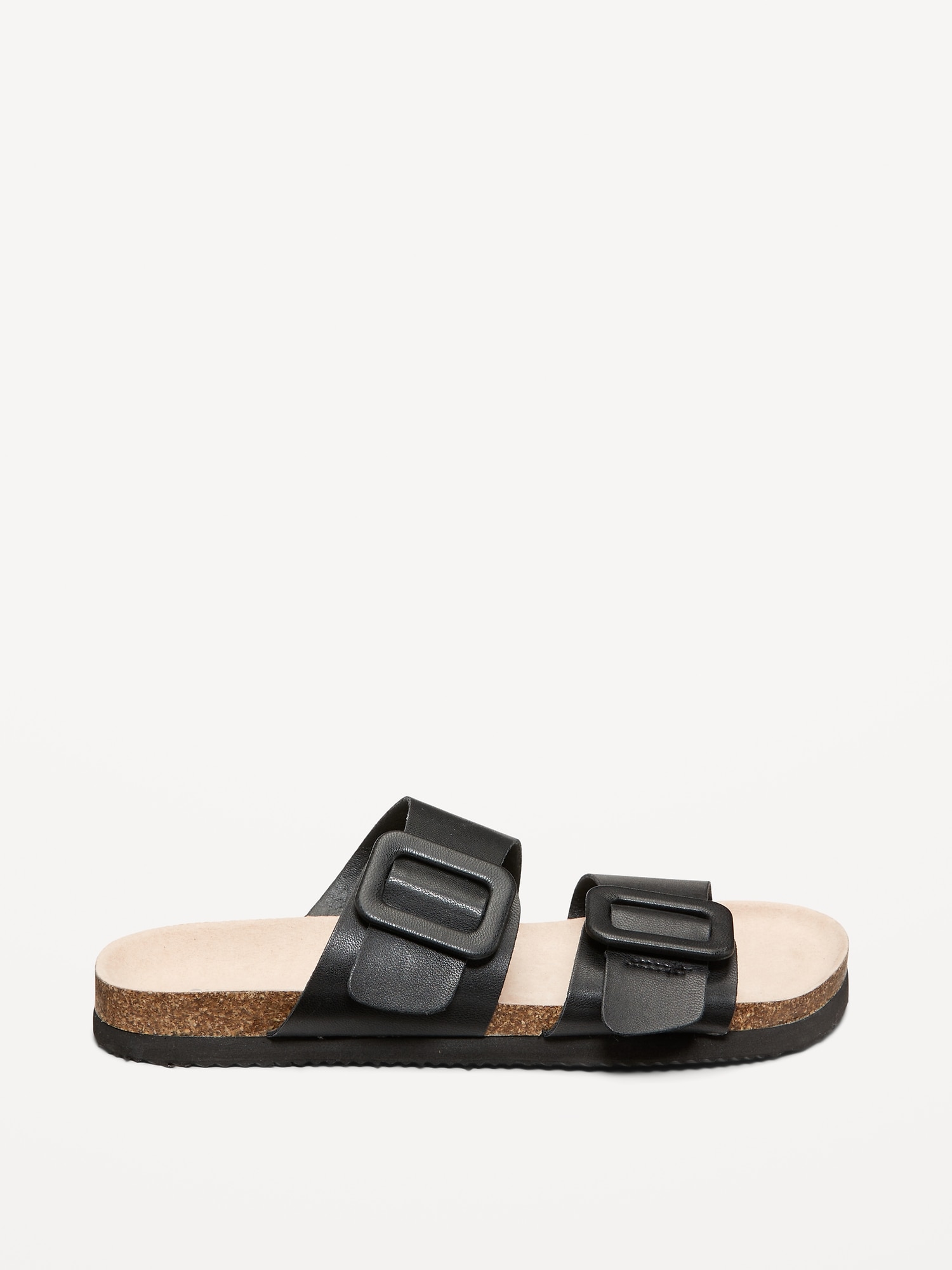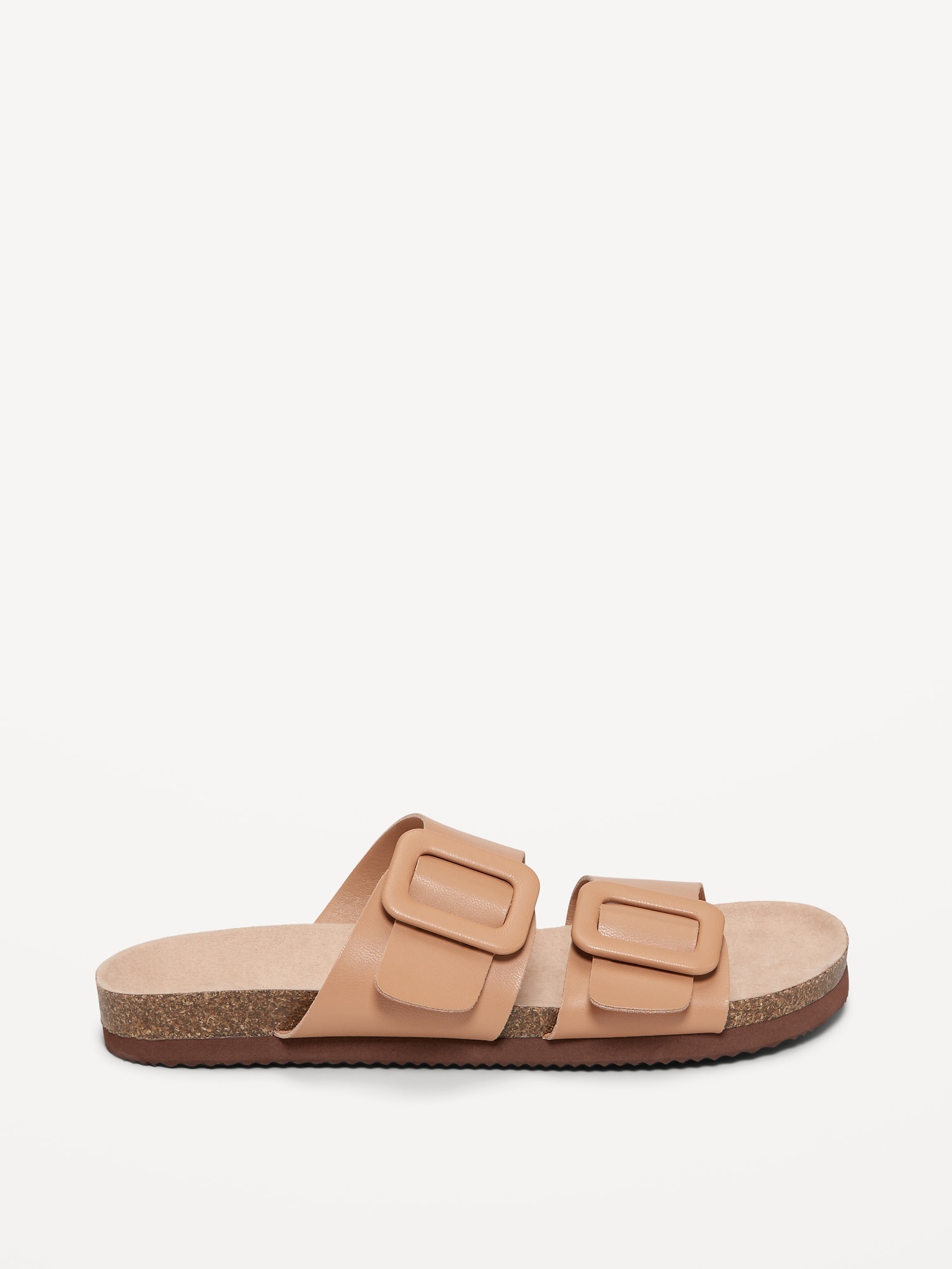 Double-Strap Earth Sandal: faux leather upper, contoured foot bed, easy slide-on style, #663898