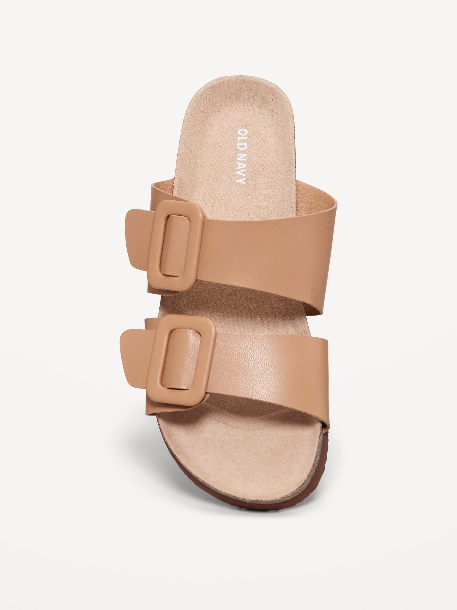 Double-Strap Earth Sandal: faux leather upper, contoured foot bed, easy slide-on style, #663898