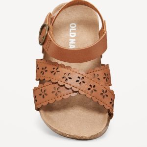 Double-Strap Sandals for Baby: ankle strap, decorative bow across foot, faux-cork midsole, cushioned foot bed, #762298