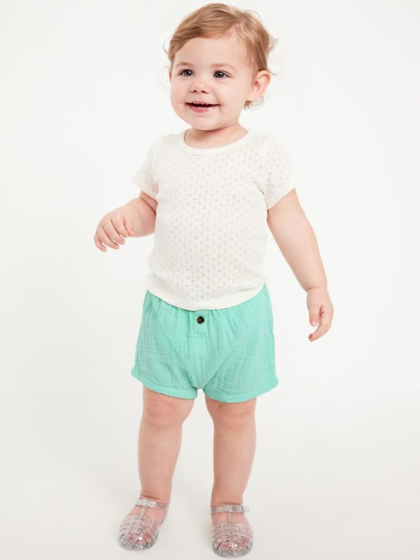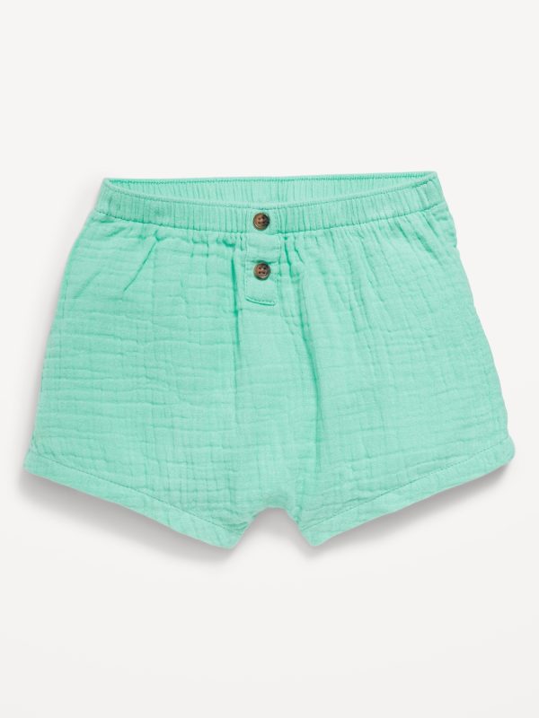 Double-Weave Button-Front Shorts for Baby: elasticized waist, decorative buttons, patch pocket at back, #686977