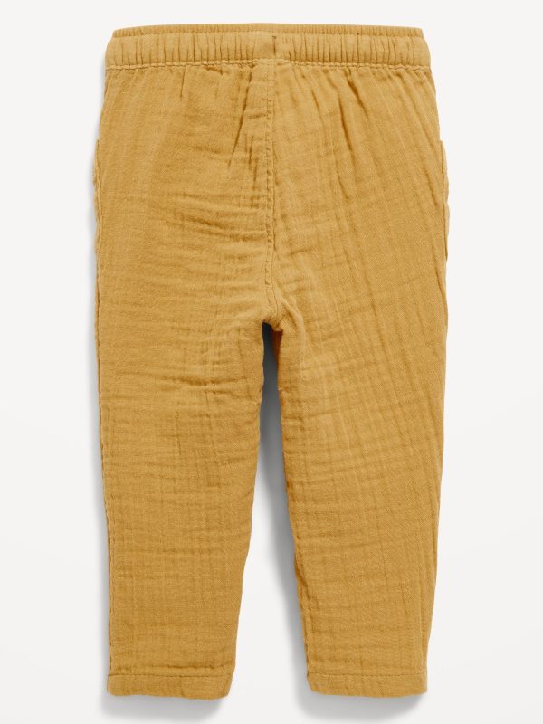 Double-Weave Pants for Baby: elasticized waistband, functional drawstring, side patch pockets, online exclusive, #761915