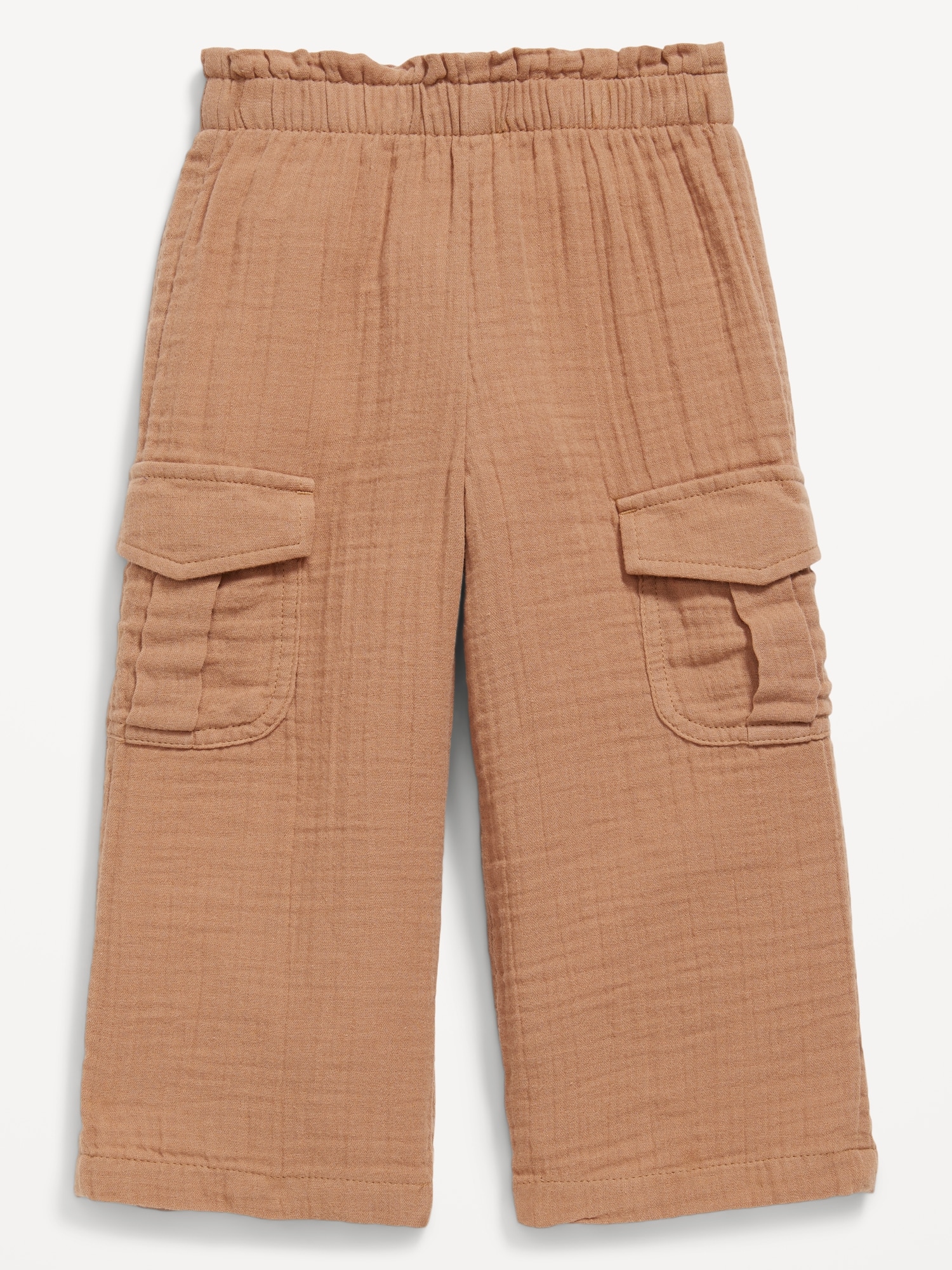 Double-Weave Wide-Leg Cargo Pants for Toddler Girls: ruffled elasticized waistband, flap cargo utility pockets at each leg, wide leg, online exclusive, #762432