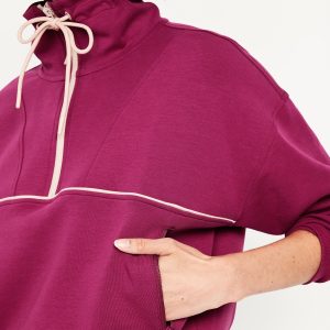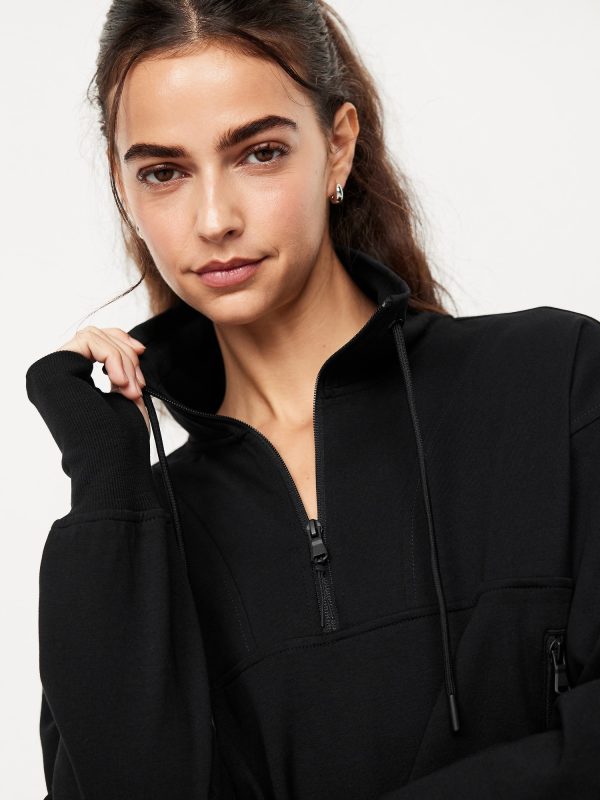 Dynamic Fleece Half Zip: Featuring Dynamic Fleece. Soft, smooth fleece plus made-to-move stretch.drawstring funnel neck, long sleeves, thumbhole cuffs, zip pockets, pullover style, #799503