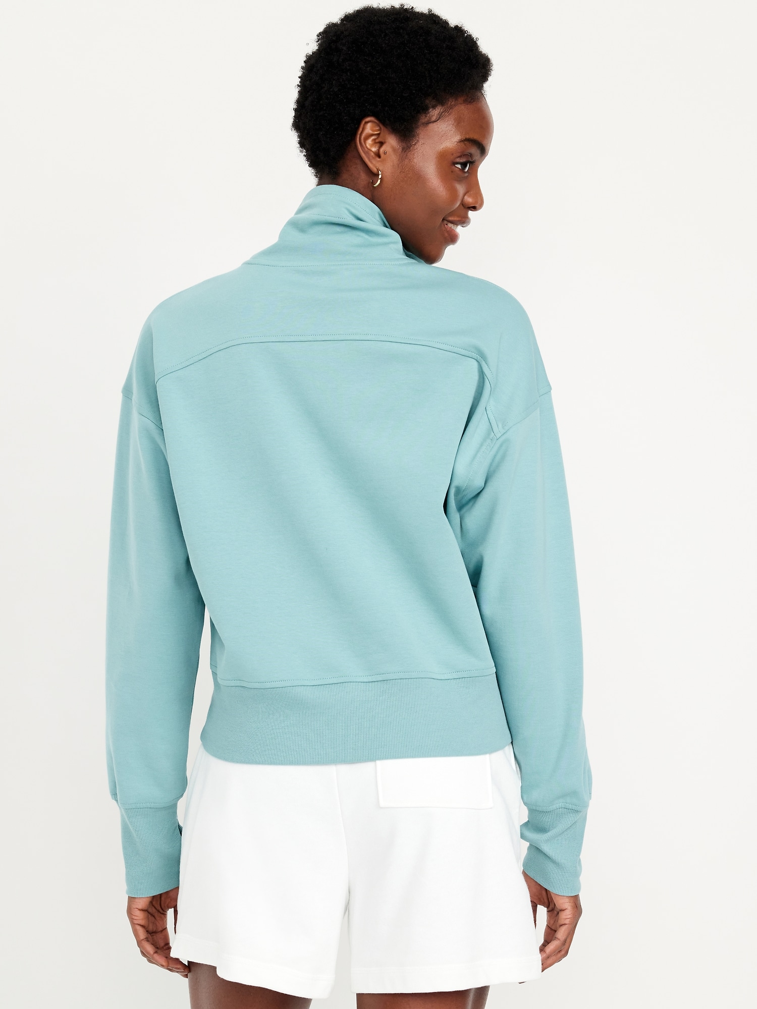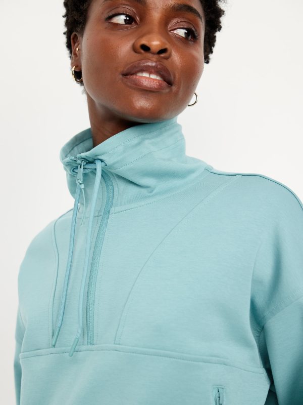 Dynamic Fleece Half Zip: Featuring Dynamic Fleece. Soft, smooth fleece plus made-to-move stretch.drawstring funnel neck, long sleeves, thumbhole cuffs, zip pockets, pullover style, #799503