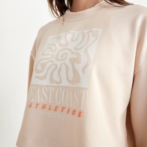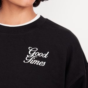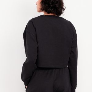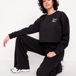 Dynamic Fleece Oversized Crop Sweatshirt: Featuring Dynamic Fleece. Soft, smooth fleece plus made-to-move stretch.rib-knit crew neck, long dolman sleeves, graphic varies, pullover style, #692129