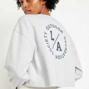 Dynamic Fleece Oversized Crop Sweatshirt: Featuring Dynamic Fleece. Soft, smooth fleece plus made-to-move stretch.rib-knit crew neck, long dolman sleeves, graphic varies, pullover style, #692129