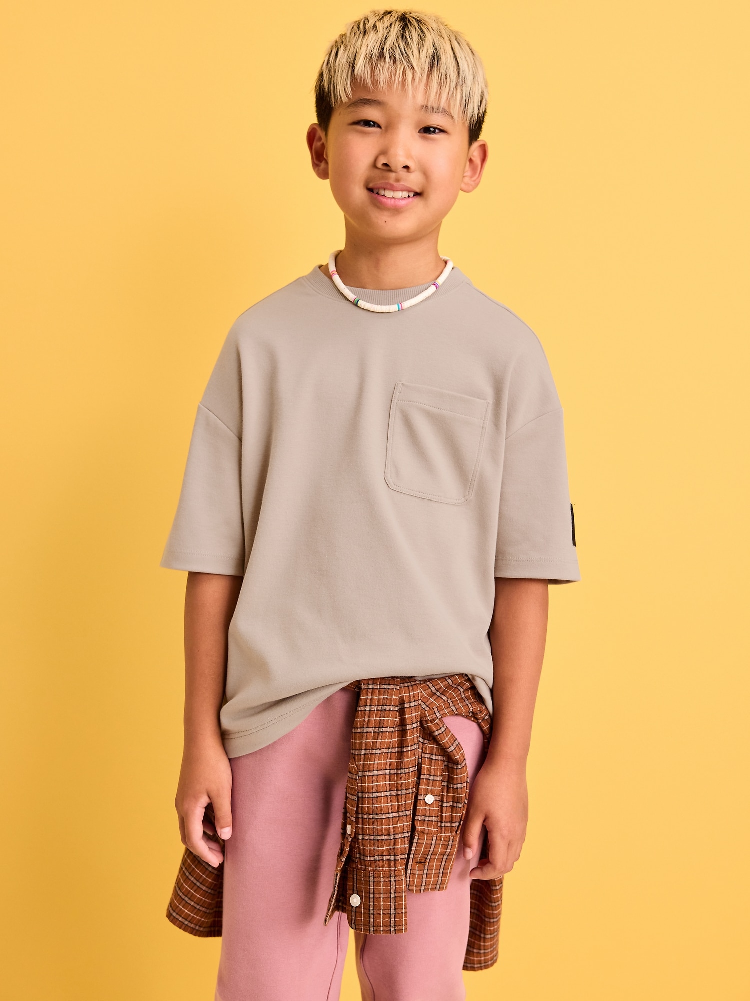 Dynamic Fleece Oversized Skate T-Shirt for Boys: crew neck, short sleeves, patch pocket, #803457