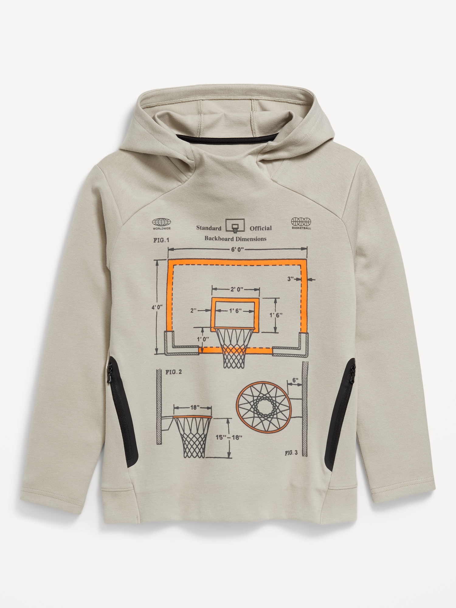Dynamic Fleece Pullover Hoodie for Boys: Made to keep up with all their shenanigans.built-in hood, long sleeves, side zippered pockets, #505457