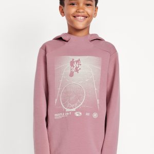 Dynamic Fleece Pullover Hoodie for Boys: Made to keep up with all their shenanigans.built-in hood, long sleeves, side zippered pockets, #505457