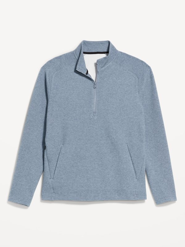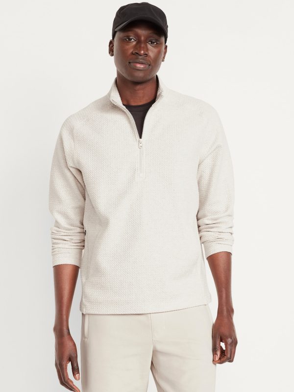 Dynamic Fleece Textured Half Zip: Featuring Dynamic Fleece. Soft, smooth fleece plus made-to-move stretch.mock neck, long sleeves, half-zip front, front pockets, hidden zip stash pocket, pullover style, #564828
