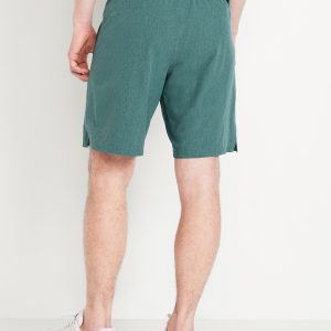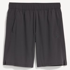 Essential Woven Workout Shorts — 9-inch inseam: High-performance fabric with stretch for 24/7 comfort.elastic-drawstring waist, hip pockets, hidden left stash pocket fits your phone or wallet, welt pocket at back right, breathable, go-h20 water-repellent fabric, #611553