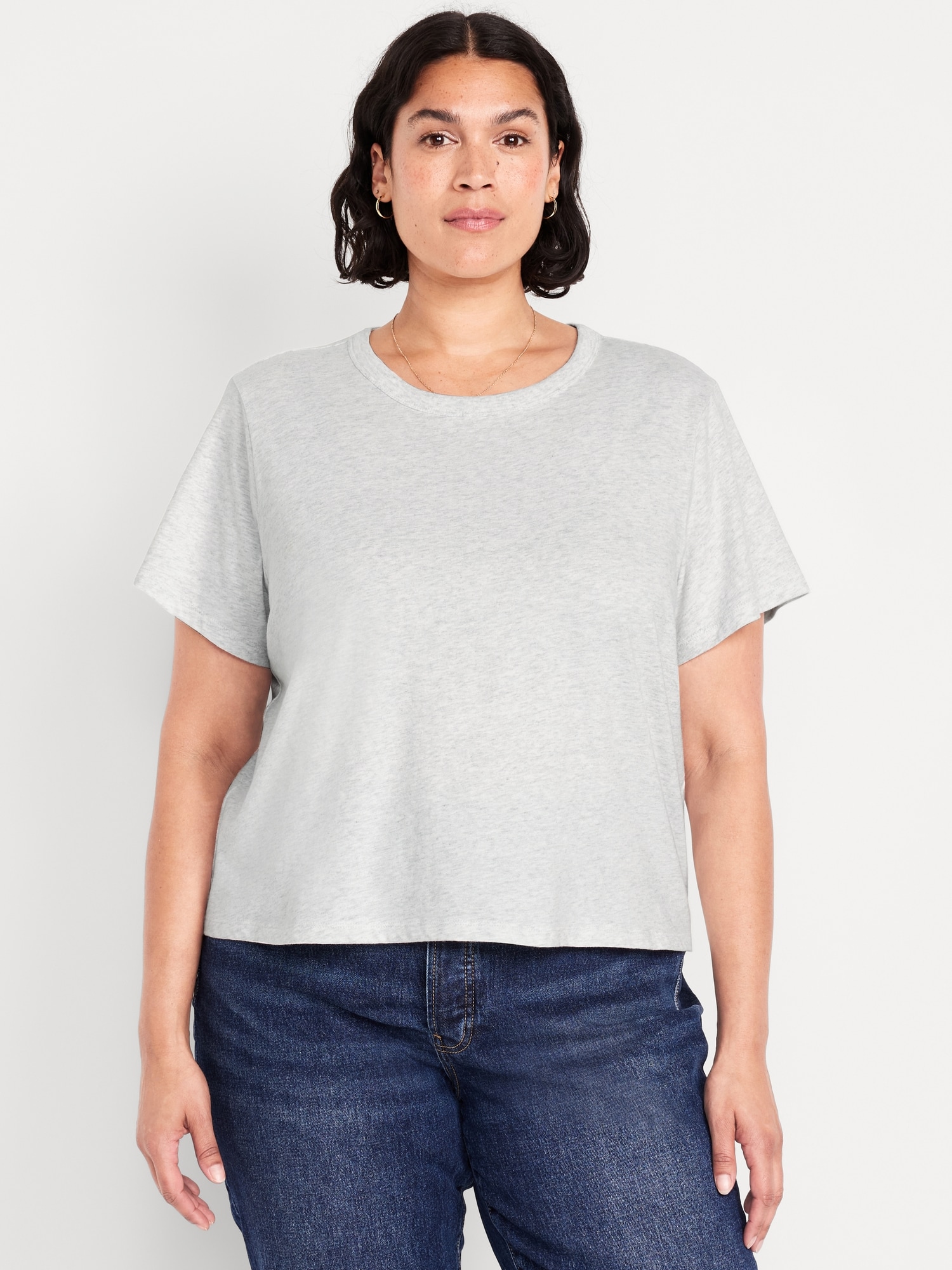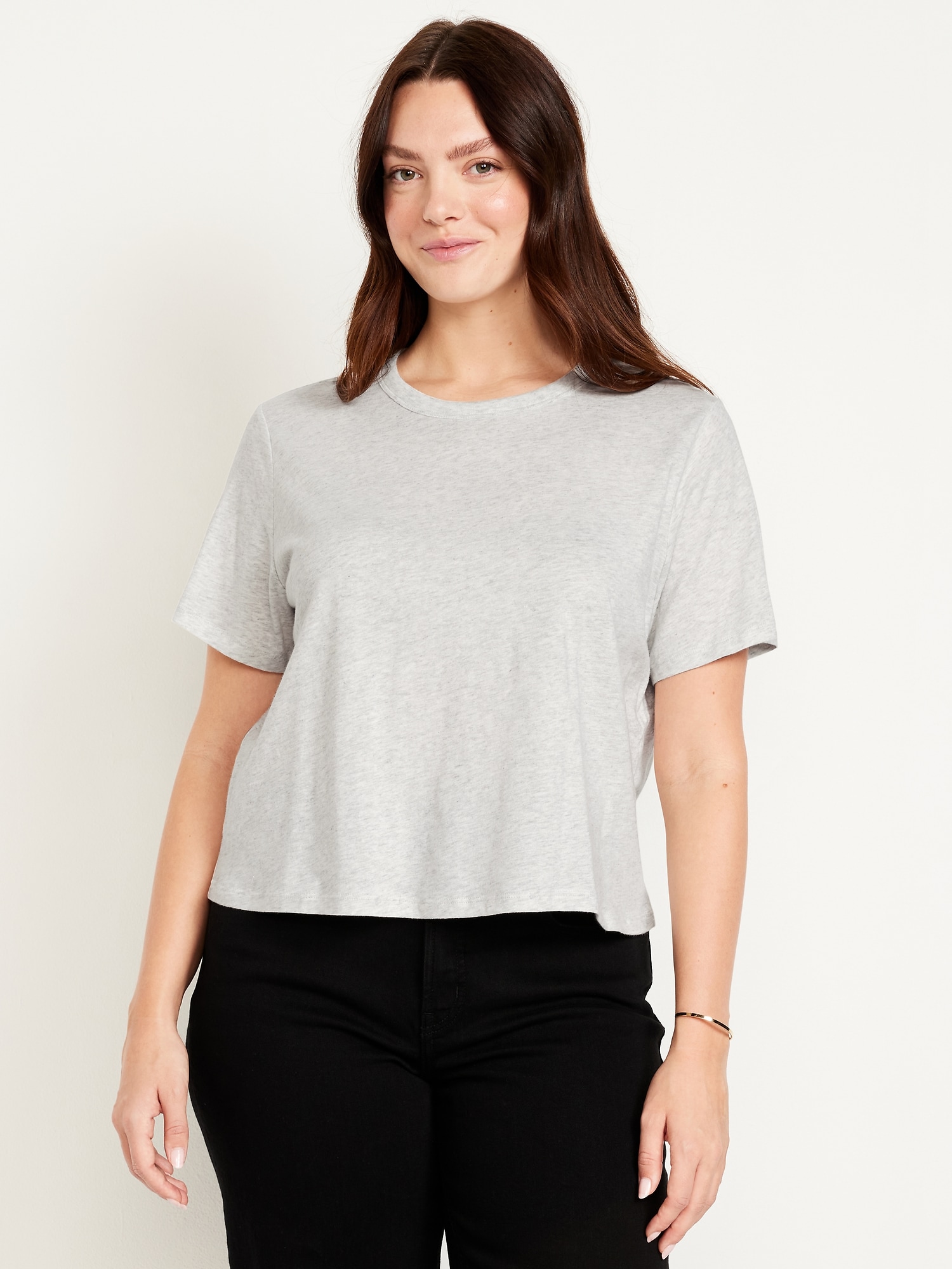 EveryWear Crew-Neck Crop T-Shirt: Our EveryWear T-shirts are super-soft, with a comfortable, relaxed fit. Wear ’em with everything.rib-knit crew neck, short sleeves, #715711