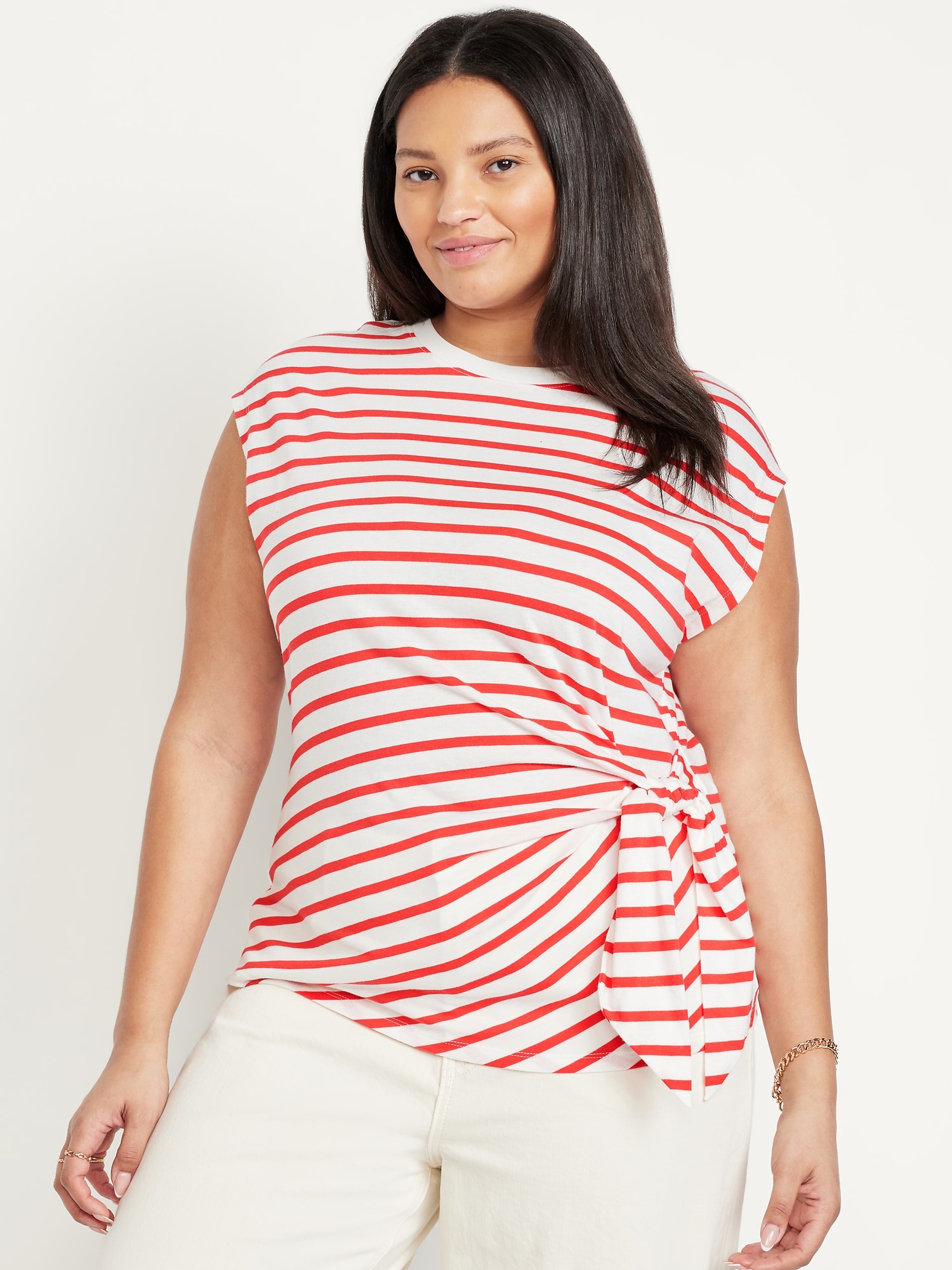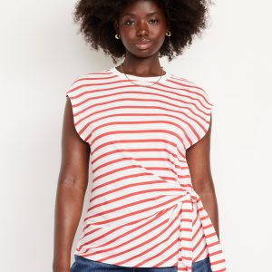 EveryWear Side-Tie Top: Our EveryWear T-shirts are super-soft, with a comfortable, relaxed fit. Wear ’em with everything.rib-knit crew neck, cap sleeves, knotted side tie, #686613