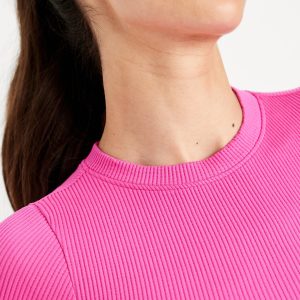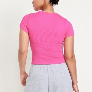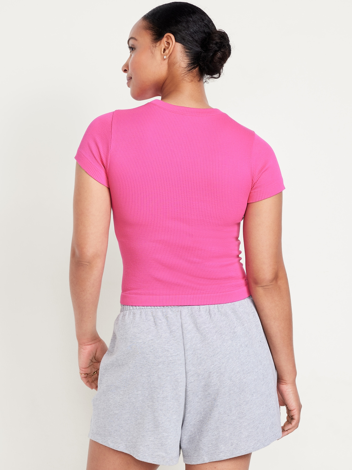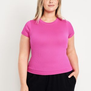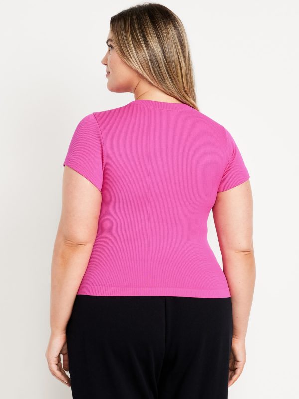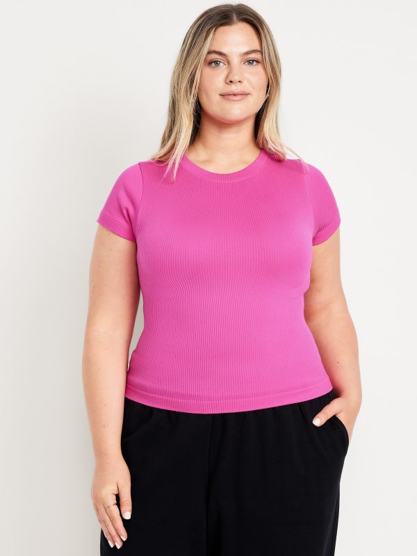 Exhale Seamless Fitted Rib T-Shirt: Ribbed nylon with incredible stretch and softness.crew neck, short sleeves, go-dry wicks moisture, #892256