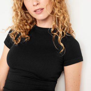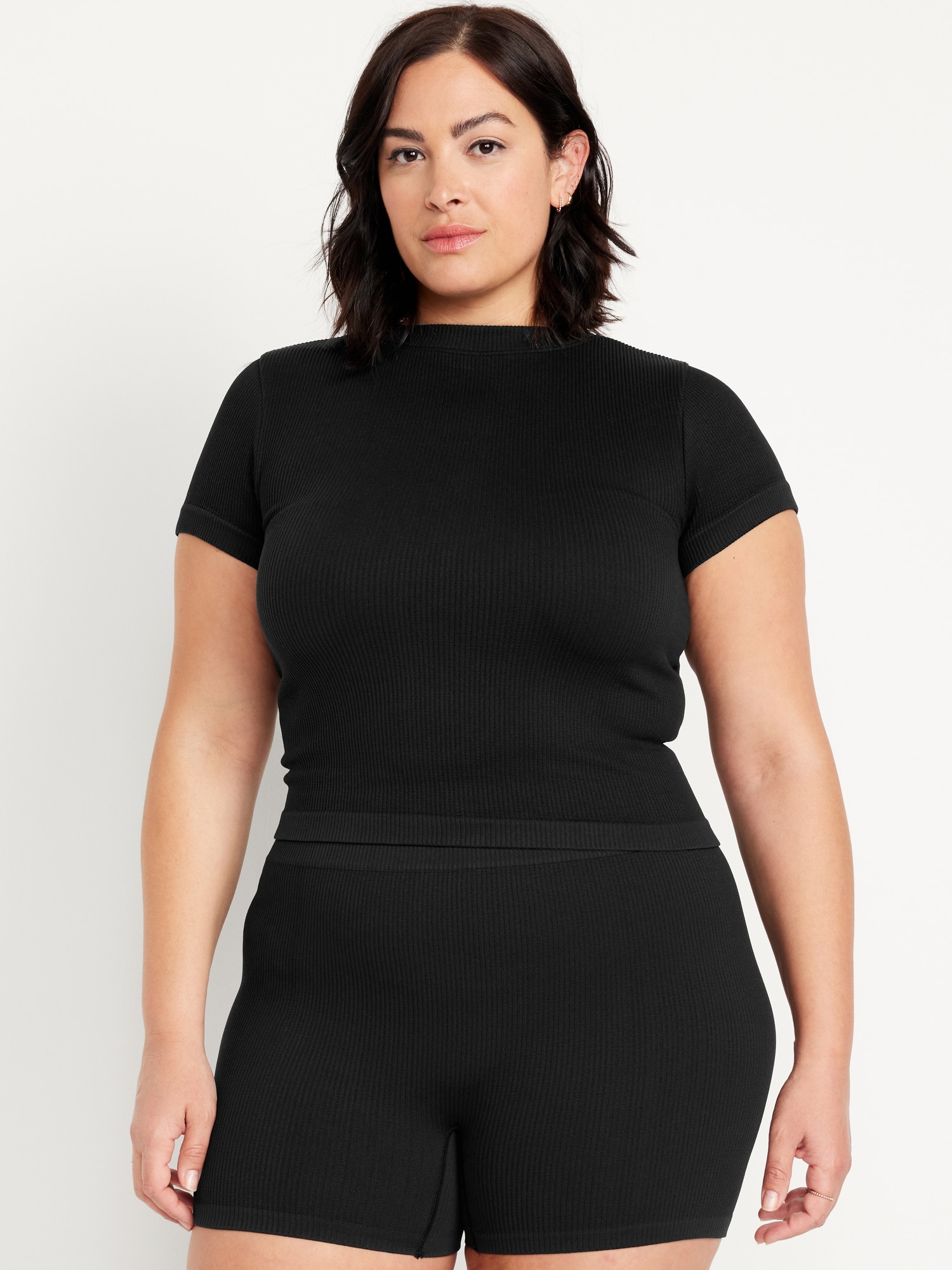 Exhale Seamless Fitted Rib T-Shirt: Ribbed nylon with incredible stretch and softness.crew neck, short sleeves, go-dry wicks moisture, #892256