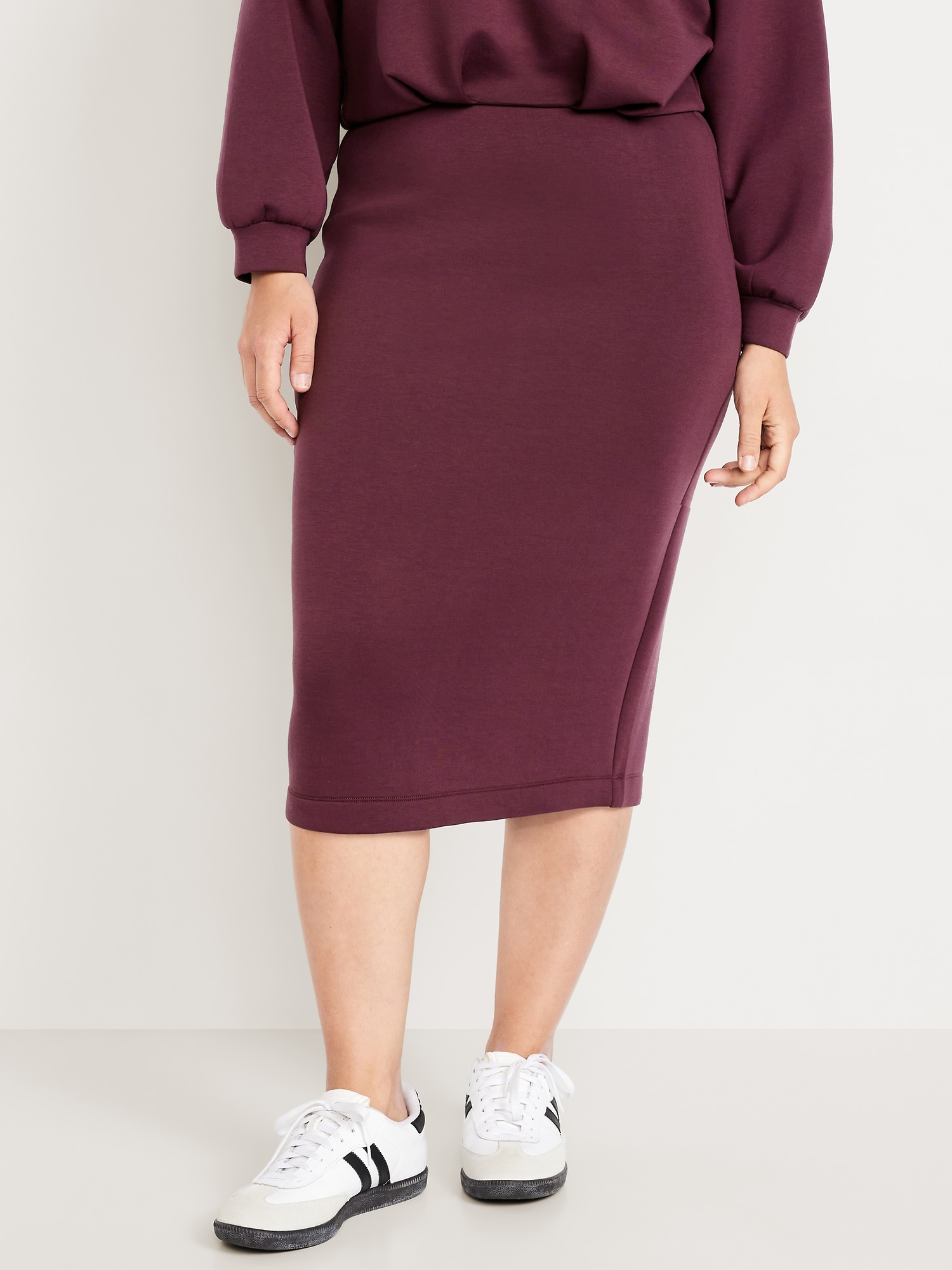 Extra High-Waisted Bounce Fleece Midi Skirt: Featuring Bounce Fleece. A smooth, cooling finish that feels good and looks chic everywhere you go.pull-on waistband, breathable, #784655
