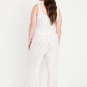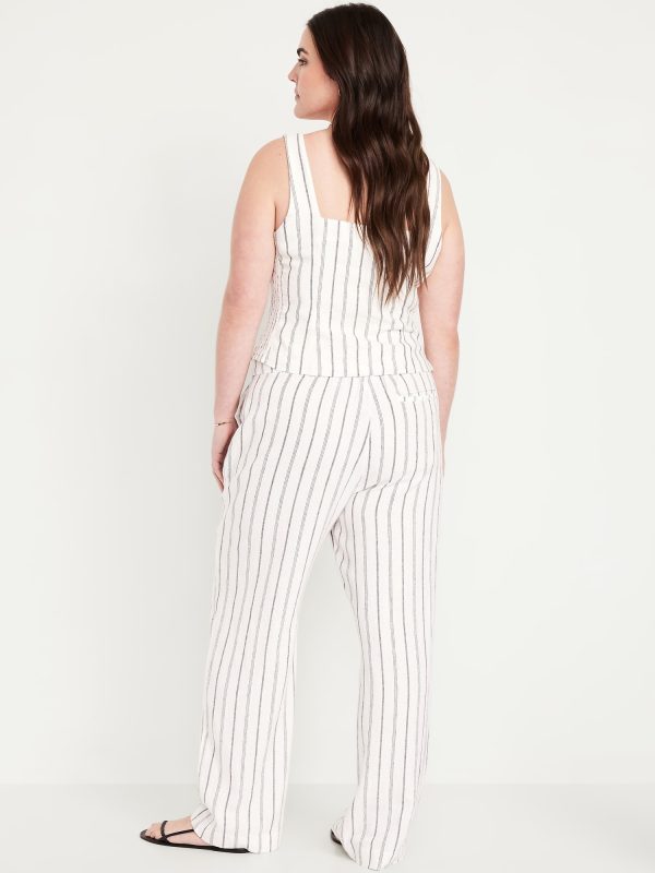 Extra High-Waisted Linen-Blend Taylor Wide-Leg Trouser Pants: Tailored pleats. Loose fit. Don’t do 9-5 (or 5-9) without them.partially-elasticized waistband, hook-and-bar closure, hip pockets, functional back welt pocket, striped print, wide leg, #683376