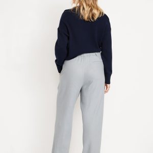 Extra High-Waisted Linen-Blend Taylor Wide-Leg Trouser Pants: Tailored pleats. Loose fit. Don’t do 9-5 (or 5-9) without them.partially-elasticized waistband, hook-and-bar closure, hip pockets, functional back welt pocket, striped print, wide leg, #683376