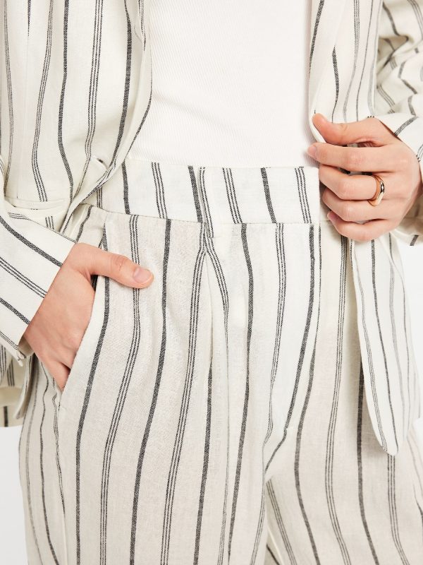 Extra High-Waisted Linen-Blend Taylor Wide-Leg Trouser Pants: Tailored pleats. Loose fit. Don’t do 9-5 (or 5-9) without them.partially-elasticized waistband, hook-and-bar closure, hip pockets, functional back welt pocket, striped print, wide leg, #683376