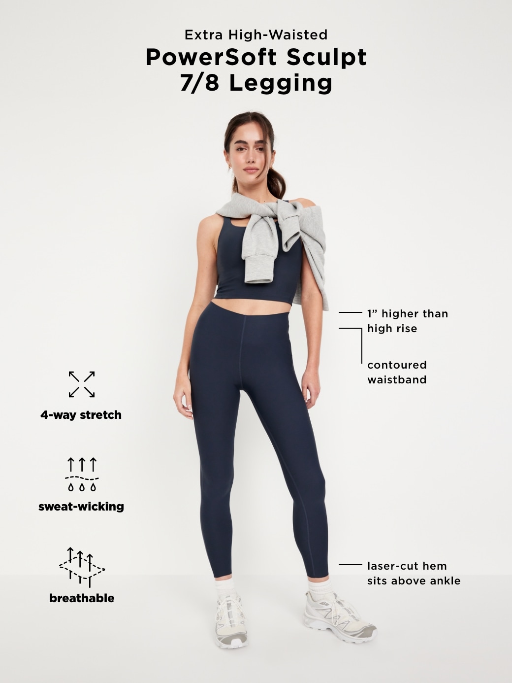 Extra High-Waisted PowerSoft Sculpt 7/8 Leggings: Ft. a contoured waistband for extra snatched support.contoured waistband smooths and supports, go-dry wicks moisture, breathable, #569988