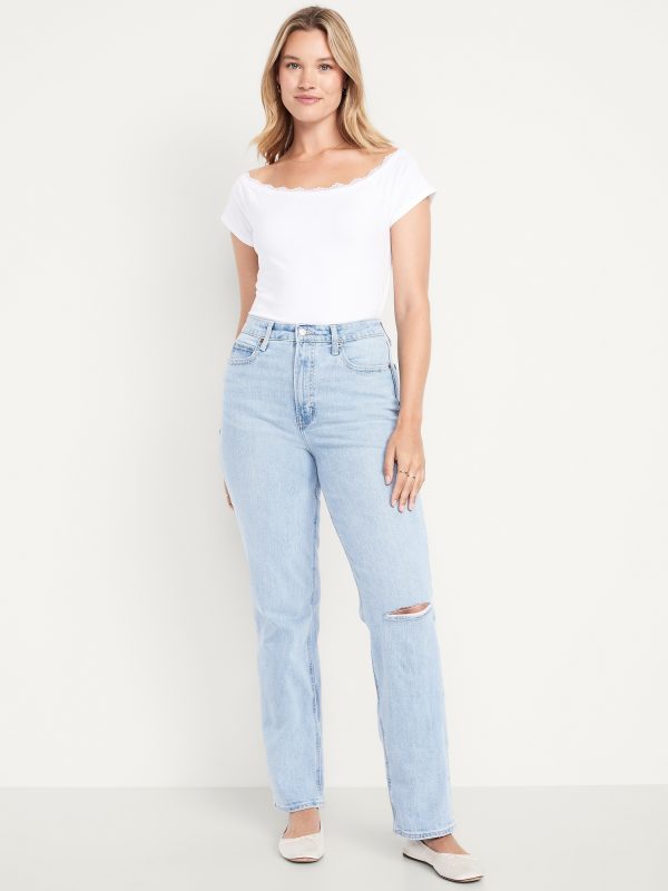 Extra High-Waisted Straight Jeans: Snatched waist with a streamlined leg and a classic silhouette.extra high waist, zip fly, straight leg, #805695