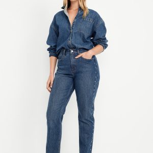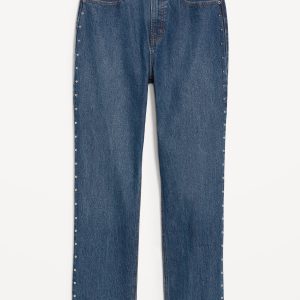 Extra High-Waisted Studded Straight Jeans: Snatched waist with a streamlined leg and a classic silhouette.extra high waist, zip fly, straight leg, #805695