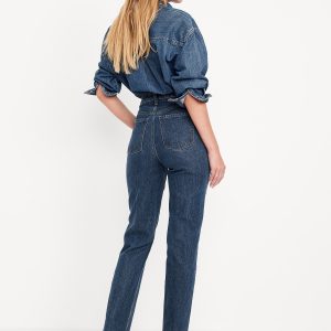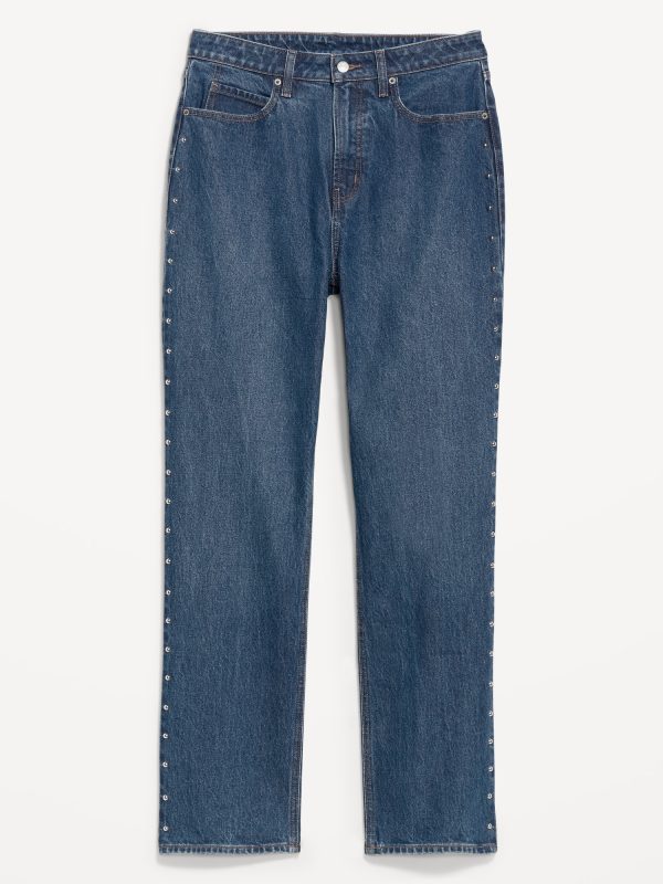 Extra High-Waisted Studded Straight Jeans: Snatched waist with a streamlined leg and a classic silhouette.extra high waist, zip fly, straight leg, #805695